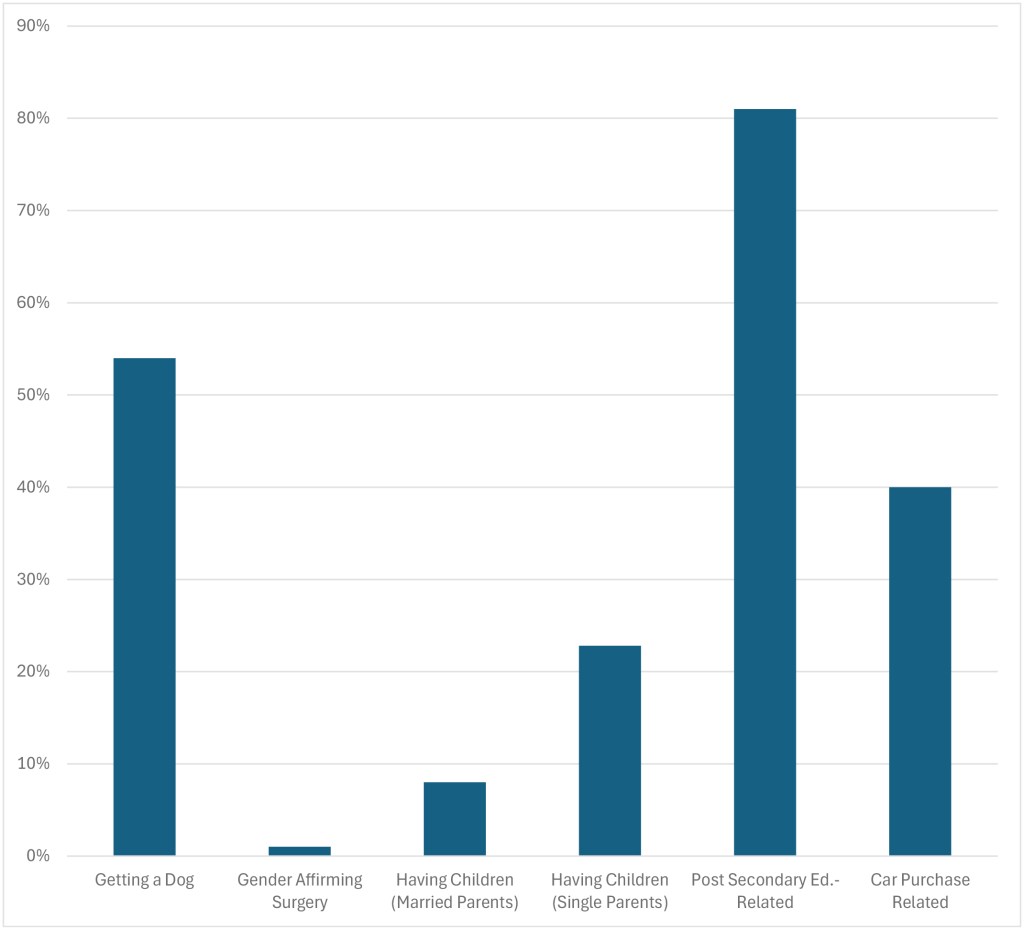 Having children regret: Post-secondary education-related regret: may involve debt, subject-related, having attended, etc. 81% of Canadians regret taking out a student loan – Finder
